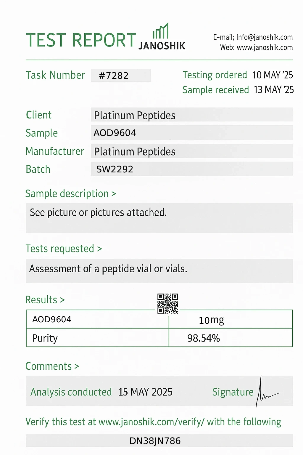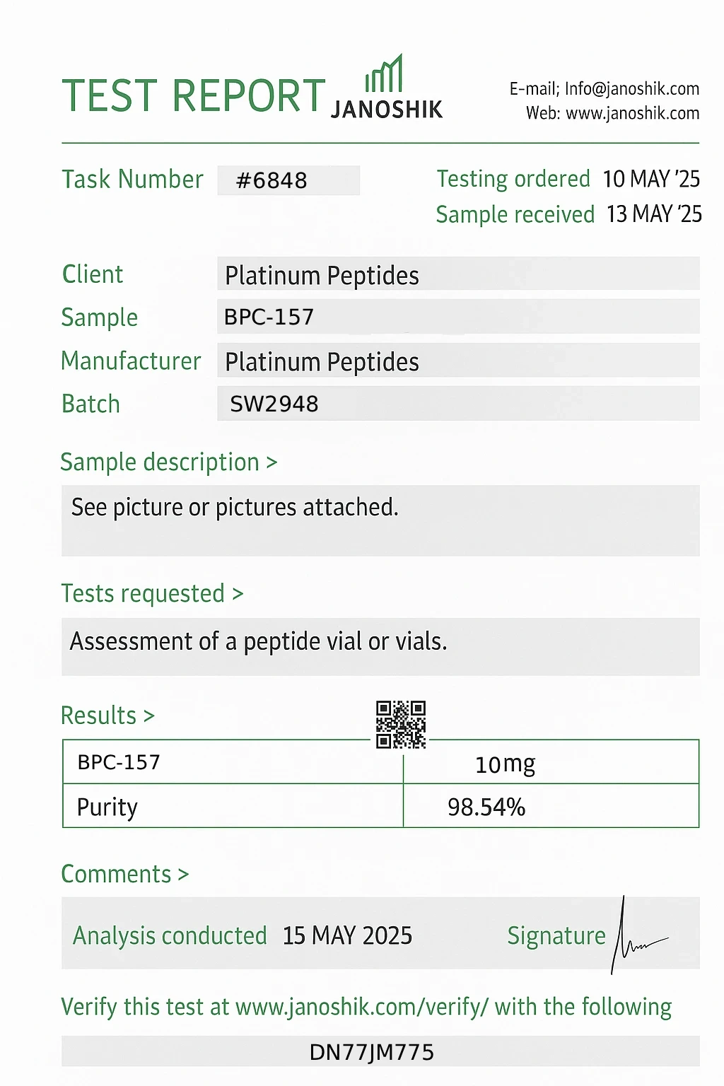 We offer the highest quality peptides in the world, free of LPS, heavy metals, and other contaminants. We continuously test and publish our results to ensure our customers can have confidence in our products.